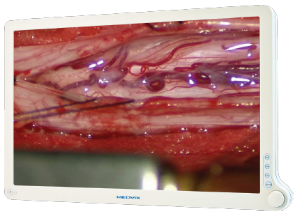 La serie MEDVIX-AMVX son todas pantallas de alto brillo para cirugía, panel TFT/LCD Matriz con color en alta definición que soporta entradas Análogo, DVI Digital, Video compuesto y Súper Video.